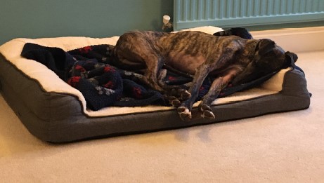 Galgos are big couch potatoes so let’s first look at beds as they’ll spend a fair bit of their day snoozing. They need soft beds as they don’t have much padding on those slender bones so my dogs have always favoured a soft-sided bed. These come in different shapes, sizes, styles and colours and of course various prices so it’s a good idea to shop around. You will need to look at large or extra-large sizes depending on the style and make. The inside measurement of the beds pictured is a minimum 80 cm in length.