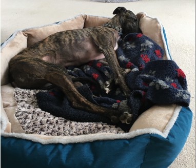 My two galgos have spent many hours road testing the beds pictured! Some beds have zip-off covers, some don’t so you’ll see that I like to add thick fleece blankets for my dogs. There are a couple or reasons why; one is they like to snuggle, especially in the winter, the other reason is hygiene. Washing a fleece blanket regularly is much easier than trying to wash the whole dog bed.