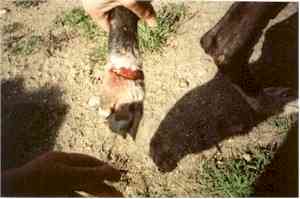 - This is the detail of Reina’s foot, caught in a fox trap.
