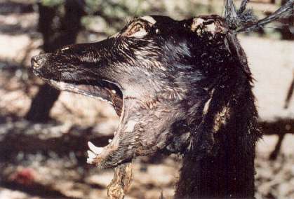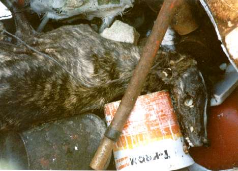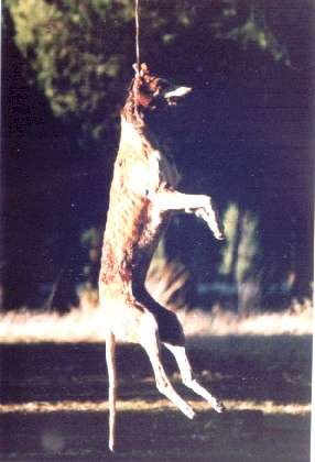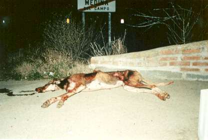 We regret to say the above photographs represent only a fraction of the tragic material gathered since Fermin started his work for greyhounds in February 1997. The hanging of greyhounds has decreased dramatically in the Medina del Campo areas but instead, Scooby received this year 300 unwanted greyhounds into their refuge in the two months following the end of the hunting season. The hanging of greyhounds elsewhere in Spain continues albeit less conspicuously in some areas. Animal Welfare Groups and the Guardia Civil say that it is continuing but has gone underground.