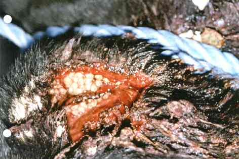 - This wound on the neck was alive with maggots. Now the bitch is cured, well and in a home in Belgium.