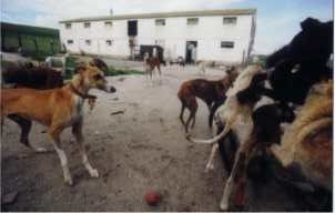 In February 1997, Senor Fermin Perez, a science teacher in Medina del Campo and President of Scooby Association for the Protection of Animals, photographed scores of their bodies in and around his small town of 20,000 people in Castilla y Leon. In April 1997, he appeared on Telecinco TV news with filmed evidence, and the next day a law was passed in Castilla y Leon condemning this way of killing a dog. At this writing, nearly three years later, not one prosecution has taken place or even one hanging been investigated, despite scores of other incidences? Consequently foreign anger rained down on the Regional Authorities and Medina del Campo became well known amount greyhound lovers in many parts of the world. The result was that in the year 1999, there was only one hanged body found in Medina’s nearby area. Instead, three hundred greyhounds were brought into Medina’s refuge in two months. One day in Medina I observed Scooby’s helpers pick up twenty-six galgos in one morning, all from different sources-from galgueros, from the street, from the fields, and from other rescue centres.