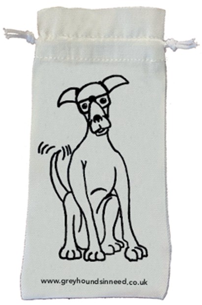 Glasses pouch with a double drawstring exclusively designed for GIN and printed with a cute galgo design.