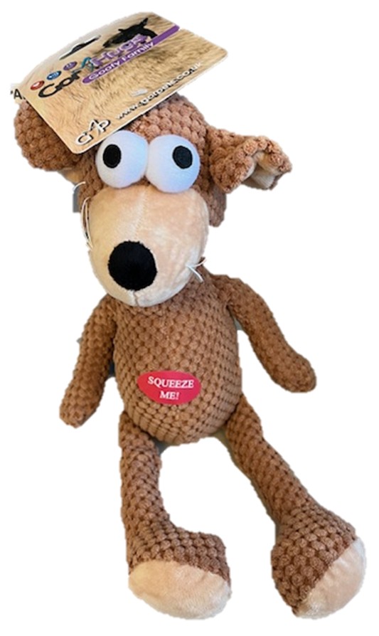 A quirky and colourful toy designed to withstand light chewing and active play.