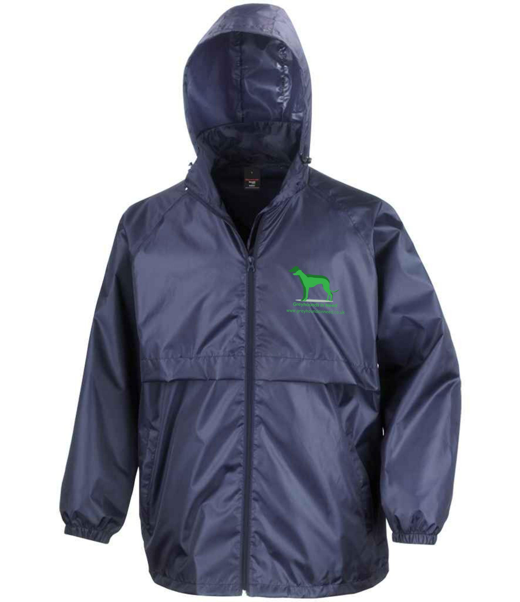 Lightweight lined waterproof jacket in Navy embroidered with the GIN logo. 190T polyester StormDri 200 PU coating. Mesh lined body and polyester lined sleeves.